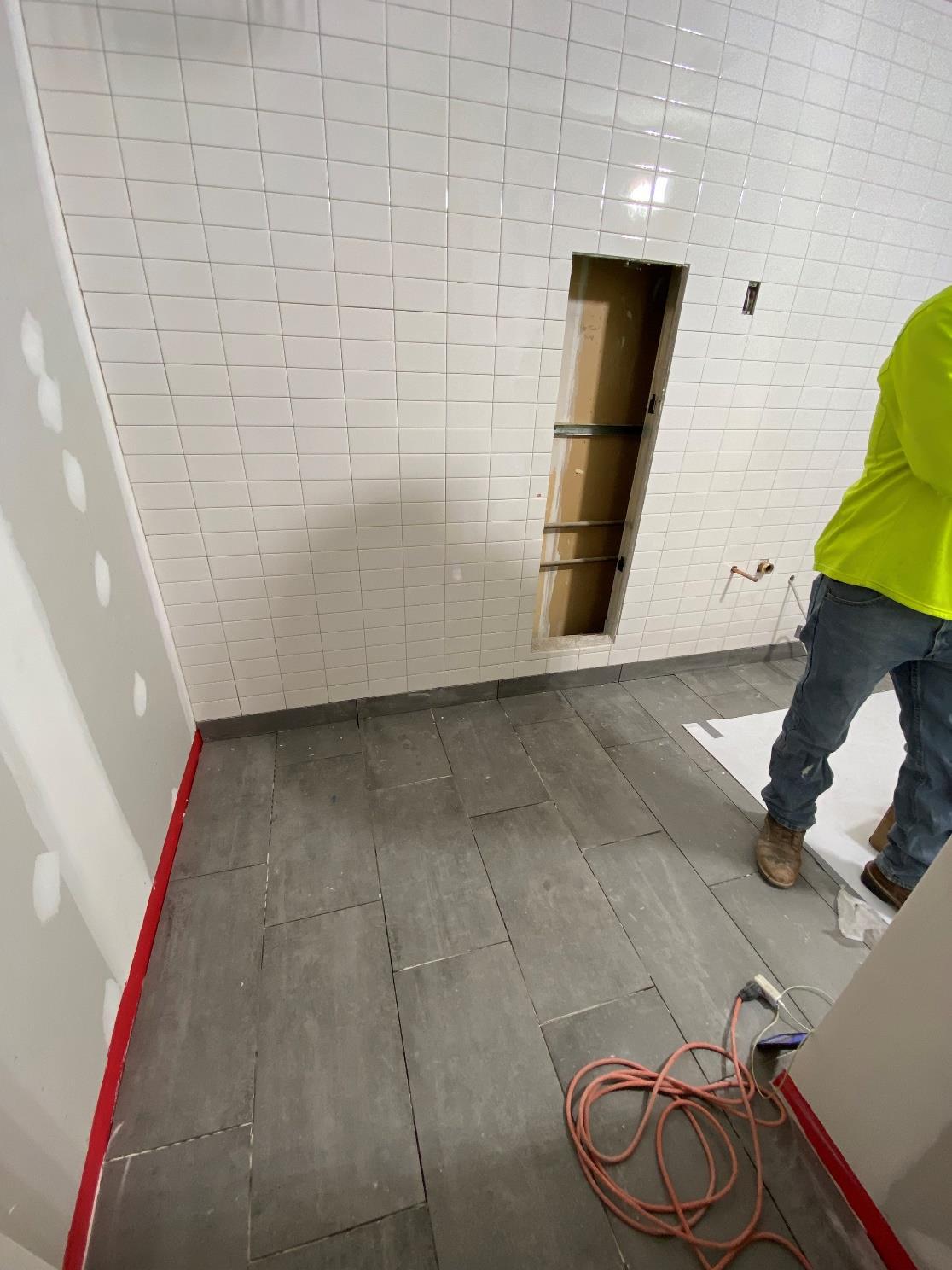 dark ceilings and light colored floors really made this space look sleek. - The architect wanted polished concrete floors, but based on the condition of the existing slabs this was going to be near impossible to make acceptable from an