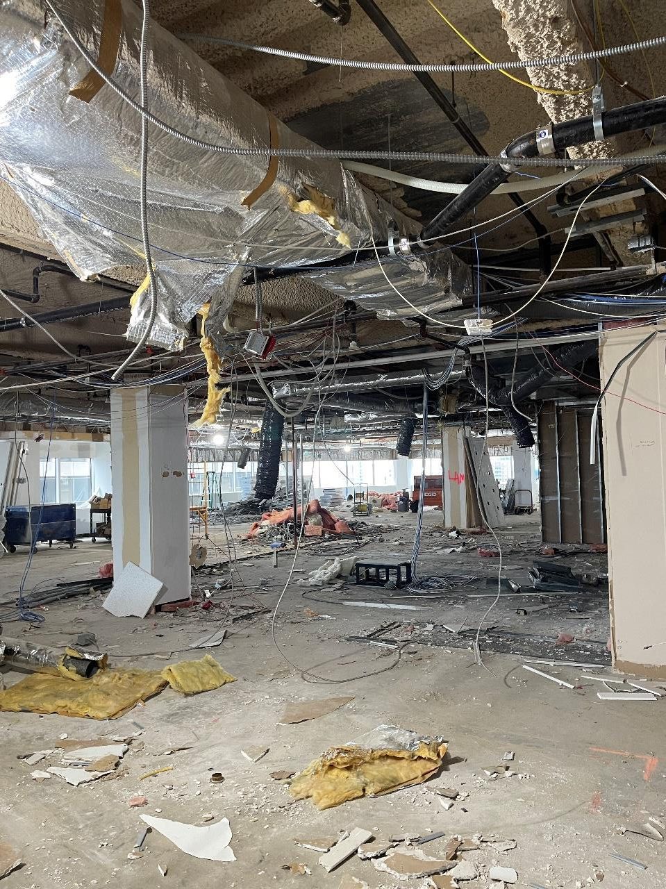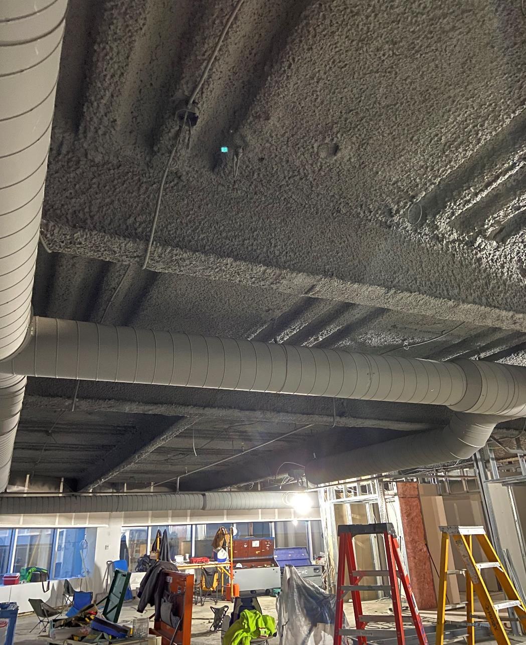 - This modern fitout was very unique in its design. We were challenged with the task of re-fireproofing much of the existing deck due to its age. Juxtaposing
