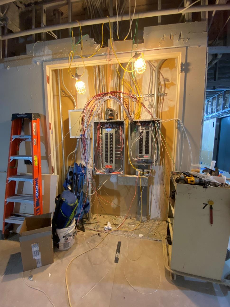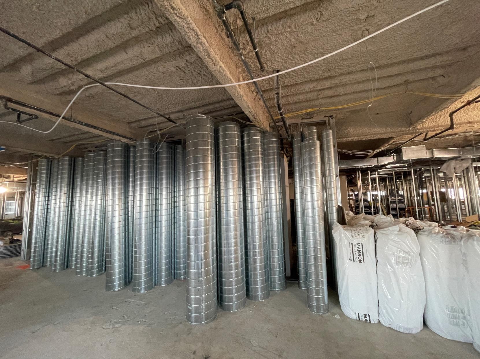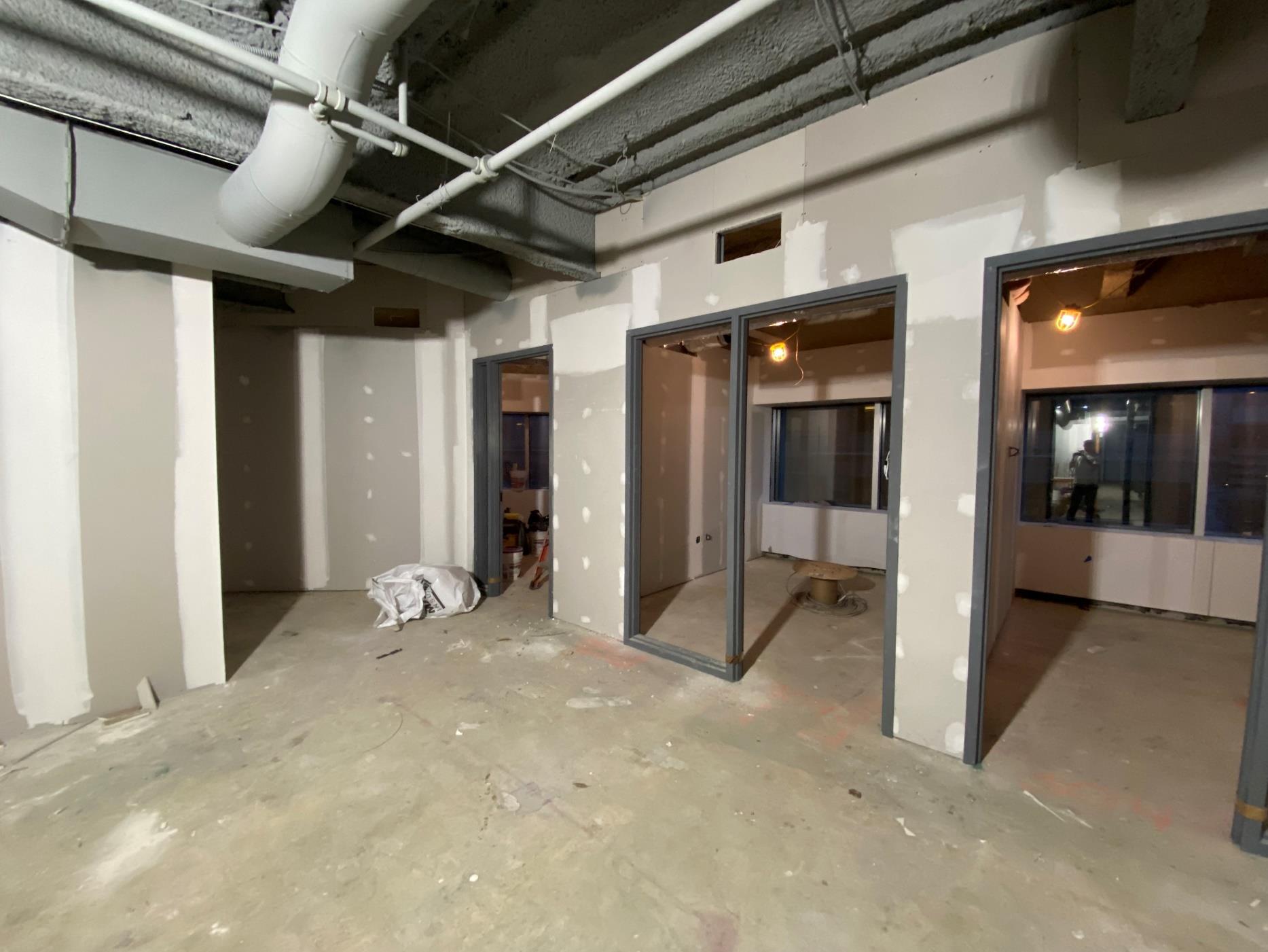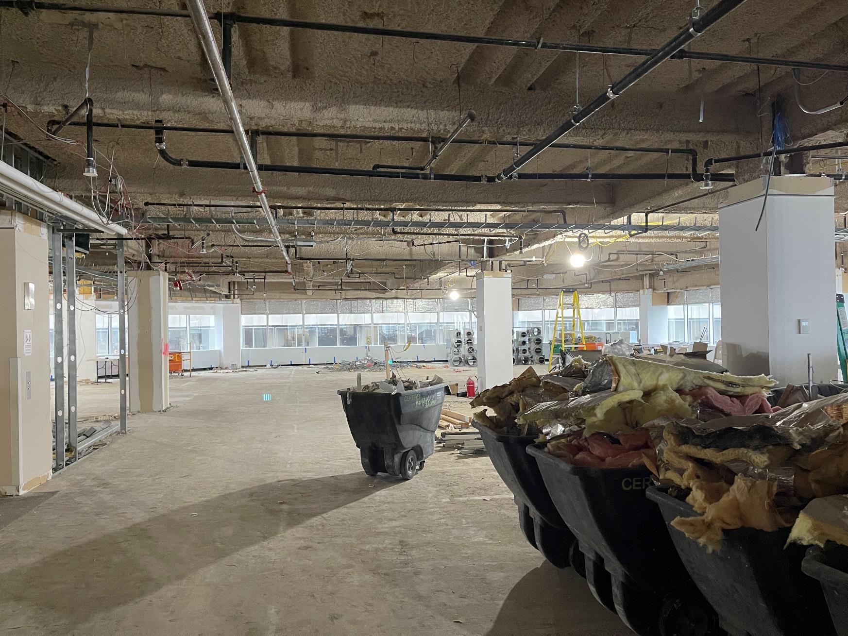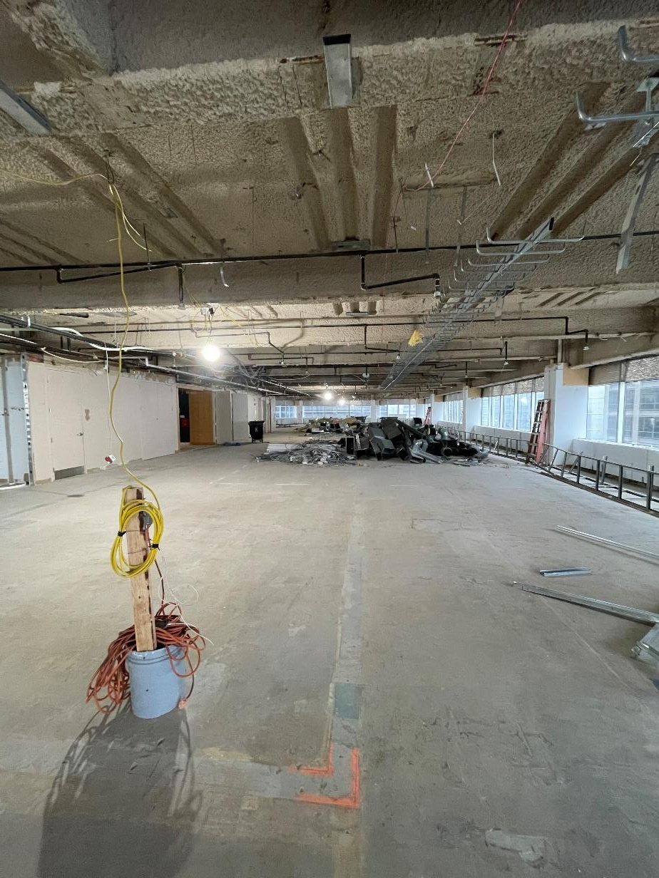 aesthetic standpoint. We were able to save our client upwards of six figures by pouring a polishable concrete topping in lieu of grinding the existing slab. - All new mechanical systems with exposed spiral duct was installed. All new plumbing and restrooms, accent millwork, motorized shades, and many other